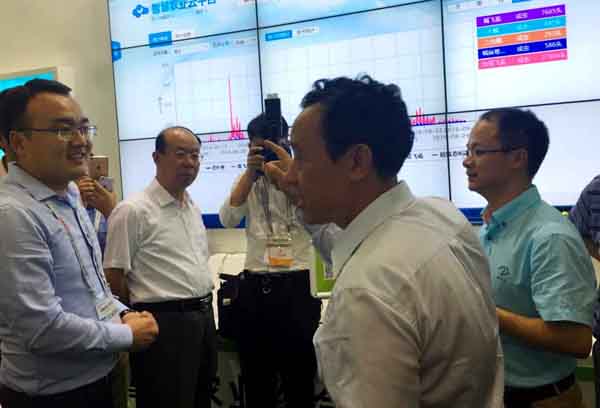 圖為:屈冬玉副部長針對(duì)物聯(lián)網(wǎng)應(yīng)用進(jìn)行現(xiàn)場指導(dǎo)