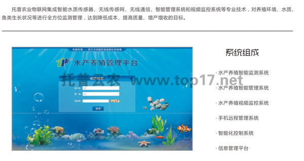 我國雖然是水產養殖大國,但是過去大多是依靠廣袤的海岸線和豐富的淡水資源,養殖過程中所應用的科技化含量比較低,養殖方式單一,大多屬于粗放式的,依靠養殖人員的經驗進行養殖,基本上屬于靠天吃飯。這樣不僅水產養殖品質很難保證,而且養殖的風險也很高,一旦出現問題,往往是損失慘重,因此自農業物聯網興起以來,浙江托普云農科技股份有限公司(以下簡稱“托普云農”)就積極投入到了水產養殖監控系統的研發當中,希望利用它來掀起傳統水產養殖行業的革命,顛覆以往水產養殖的運作方式。