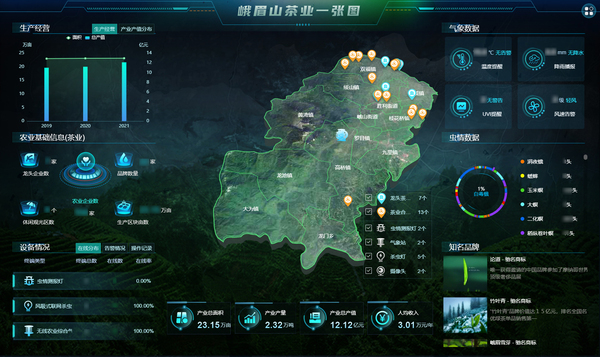 峨眉山茶始于西周,發(fā)乎于秦漢,盛名唐宋。近年來,峨眉山市國家農(nóng)村產(chǎn)業(yè)融合發(fā)展示范園堅持以茶葉為主導產(chǎn)業(yè),建設優(yōu)質(zhì)茶業(yè)基地,形成“園區(qū)+產(chǎn)業(yè)+旅游+文化”的茶產(chǎn)業(yè)模式。托普云農(nóng)以峨眉山茶產(chǎn)業(yè)基地為依托,布設蟲情、苗情、墑情、災情監(jiān)測智能裝備,打造茶產(chǎn)業(yè)數(shù)字化平臺,涵蓋茶產(chǎn)業(yè)一張圖、生產(chǎn)綜合管理、市場行情監(jiān)測等內(nèi)容,打通從“茶園”到“茶杯”的全茶產(chǎn)業(yè)鏈,帶動農(nóng)戶走出一條可復制的增收之路。