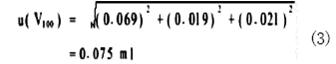1.3 100mL 消化瓶體積的標(biāo)準(zhǔn)不確定度u(V100)的分析