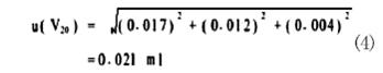1.4 20mL 移液管的標(biāo)準(zhǔn)不確定度u(V20)的分析