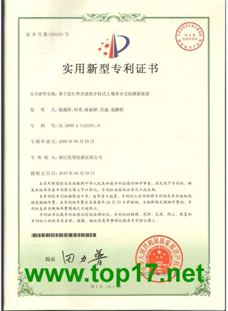 恭喜浙江托普又獲近紅外光譜手持式土壤養分無損測量裝置實用新型專利!