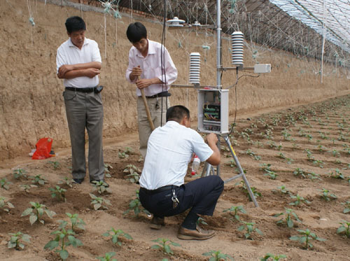 8月22日,內蒙古自治區(qū)赤峰市松山區(qū)氣象局在全家梁萬畝無公害蔬菜園區(qū)新安裝了9要素農田小氣候自動監(jiān)測儀,該儀器觀測項目包括:0㎝、10㎝、40㎝地溫,1米、1.5米的溫度、濕度,以及二氧化碳、總輻射、光和有效輻射。通過此項工作的開展,氣象服務松山設施農業(yè)又增添了新內容。
