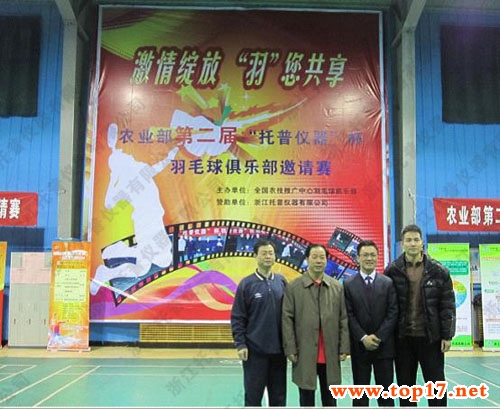 由全國農技推廣中心羽毛球俱樂部主辦、浙江托普儀器有限公司全程贊助承辦的第二屆農業部“托普儀器”杯羽毛球俱樂部邀請賽于2011年12月24日在北京貝特羽毛球館隆重舉行。本次比賽由農技推廣中心杭大鵬書記主持,浙江托普儀器有限公司陳渝陽總經理在開幕式上致辭。過程中眾位農業部領導始終圍繞“激情綻放,羽您分享”的宗旨,以“開展文體活動,推進文化建設”為主題進行發言。并且賽后陳渝陽總經理為獲獎人員頒發了獎項。