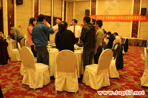 2012年11月17日,在結束了一天的會議議程、參觀完托普儀器公司之后,來自全國各地的托普優(yōu)秀經(jīng)銷們歡聚海外海酒店,參加浙江托普儀器有限公司為他們精心準備的答謝晚宴。