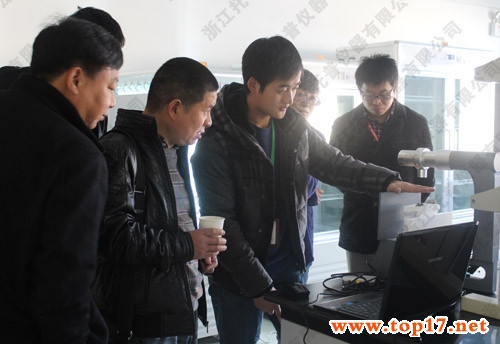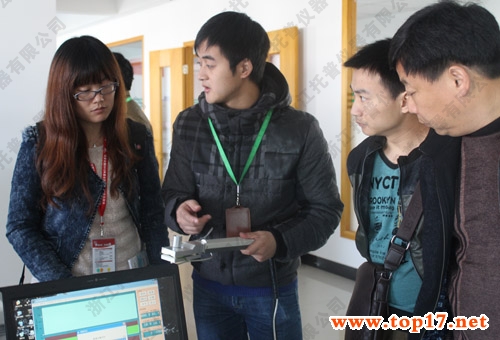 圖為:托普儀器技術人員為經銷商講解產品性能及操作方法