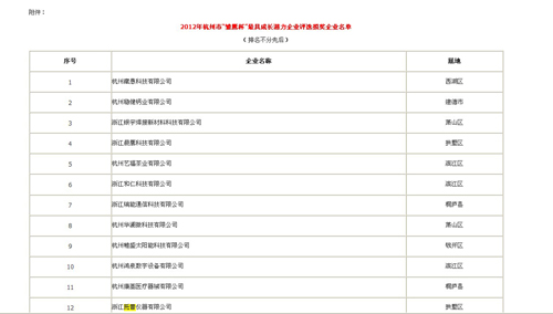根據(jù)《杭州市科技型初創(chuàng)企業(yè)培育工程“雛鷹杯”評比獎(jiǎng)勵(lì)辦法》,杭州市科學(xué)技術(shù)委員會(huì)開展了2012年杭州市“雛鷹杯”最具成長潛力企業(yè)評選活動(dòng)。經(jīng)過推薦、初評、終評等評選環(huán)節(jié),現(xiàn)將浙江托普儀器有限公司列為2012年杭州市“雛鷹杯”最具成長潛力企業(yè)。