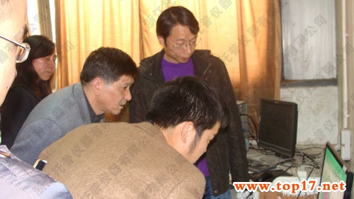 圖為:托普工作人員在演示自動控制系統(tǒng),右二為戴守勤副處長