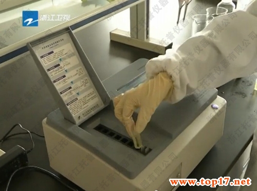 托普儀器朱旭華副總經理介紹,農藥殘留速測儀是利用目前市場上常用的兩類農藥對特殊試劑的強烈抑制作用來檢測蔬果上殘留的農藥含量。在托普儀器的實驗里,工作人員用小番茄和枇杷對NY-8D的操作過程進行演示。20分鐘左右的樣品處理,3分鐘的檢測等待,農殘儀就打印出了檢測的結果。結果顯示這兩種水果都有少量的農藥殘留,但在安全范圍之內。朱旭華副總經理也建議大家,平時在洗滌蔬果的時候,可用淡鹽水浸泡一下,以減少蔬果上的農藥殘留。