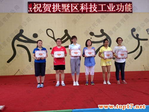 傍晚時(shí)分,比賽進(jìn)入尾聲,大賽評(píng)委為一眾選手打分排名。托普儀器參賽團(tuán)隊(duì)獲得團(tuán)體獎(jiǎng)第四名,公司參賽員工王秀芳獲得那字單打第五名,諸葛遠(yuǎn)兵獲得男子單打第六名,大賽舉辦方對(duì)獲獎(jiǎng)選手進(jìn)行了嘉獎(jiǎng)。