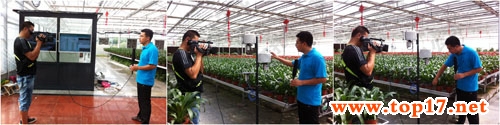 記者:所謂物聯(lián)網(wǎng),其實簡單的說就是物物相連,互相感知。大家看我身后的一組探頭(托普儀器固定式無線農(nóng)業(yè)氣象綜合監(jiān)測站),包括這個是測量溫度的,這個是測量土壤墑情的,上面還有測量二氧化碳濃度的,測量光照強度的。那這些測量數(shù)據(jù)都會上傳到我身后的中央控制室內(nèi)的計算機里,通過計算機的計算,再控制風(fēng)扇、噴灌…這些設(shè)備的運轉(zhuǎn)。