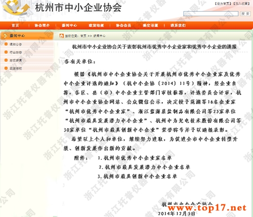 恭喜托普儀器陳渝陽董事長獲得杭州市“中小企業(yè)優(yōu)秀企業(yè)家”稱號