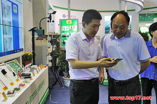會(huì)議期間,安徽省政協(xié)副主席兼省政府秘書長(zhǎng)邵國(guó)荷先生、安徽農(nóng)委趙穎南總農(nóng)藝師一行蒞臨8號(hào)館電子商務(wù)及物聯(lián)網(wǎng)展區(qū)觀摩托普云農(nóng)自主研發(fā)生產(chǎn)的農(nóng)業(yè)物聯(lián)網(wǎng)綜合服務(wù)平臺(tái)。重點(diǎn)詢問了托普云農(nóng)所展出的以色列作物本體傳感器和植物營(yíng)養(yǎng)測(cè)定儀等系統(tǒng)設(shè)備的相關(guān)情況。陳曦經(jīng)理為其一一介紹。
