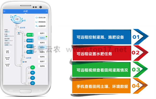 托普物聯(lián)網(wǎng)技術(shù)應(yīng)用,真正實(shí)現(xiàn)了農(nóng)業(yè)生產(chǎn)自動(dòng)化、管理智能化,通過電腦、手機(jī)實(shí)現(xiàn)對(duì)溫室大棚種植管理智能化調(diào)溫、精細(xì)化施肥,可達(dá)到提高產(chǎn)量、改善品質(zhì)、節(jié)省人力、降低人工誤差、提高經(jīng)濟(jì)效益的目的,實(shí)現(xiàn)溫室種植的高效和精準(zhǔn)化管理。